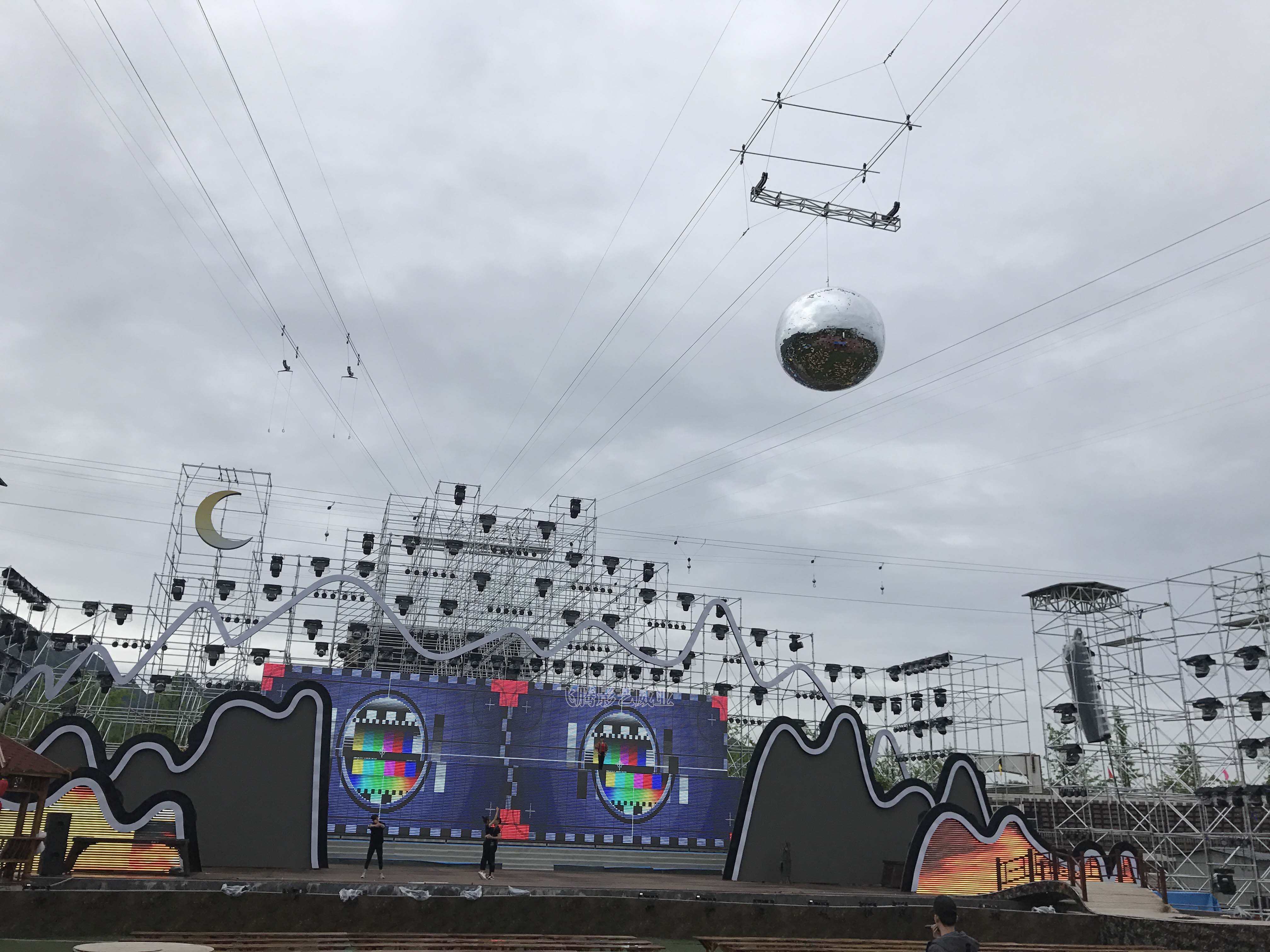空中用威亚交织成了三维舞台,由6条过江龙,9个单吊点组成。
